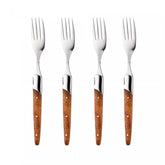 Conjunto de 4 Garfos para Mesa com Cabo de Madeira e Aço Inox 22,5cm - Wolff