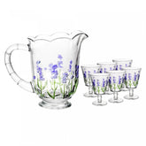 Conjunto Jarra e 6 Taças Lavanda Hand Painting 1,3L/240ml Cristal Ecológico - Lyor