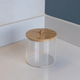 Porta Cotonete de Poliestireno com Tampa de Bambu My Box 7cm x 7cm x 8cm - Lyor