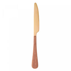 Os cabos em plástico amadeirado na cor dourada conferem um toque de requinte e sofisticação à mesa, elevando a experiência gastronômica.