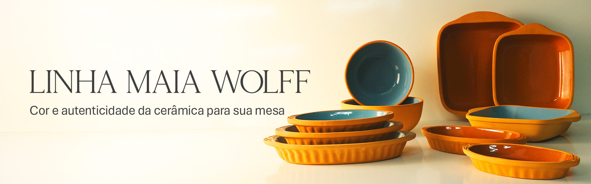 Com design que transmite autenticidade e aconchego, a Linha Maia Wolff é uma celebração da beleza natural. Inspirada nas texturas da terra e nos tons profundos da natureza, essa coleção traz peças em cerâmica com acabamento artesanal, perfeitas para compor uma mesa posta cheia de charme, presença e originalidade.