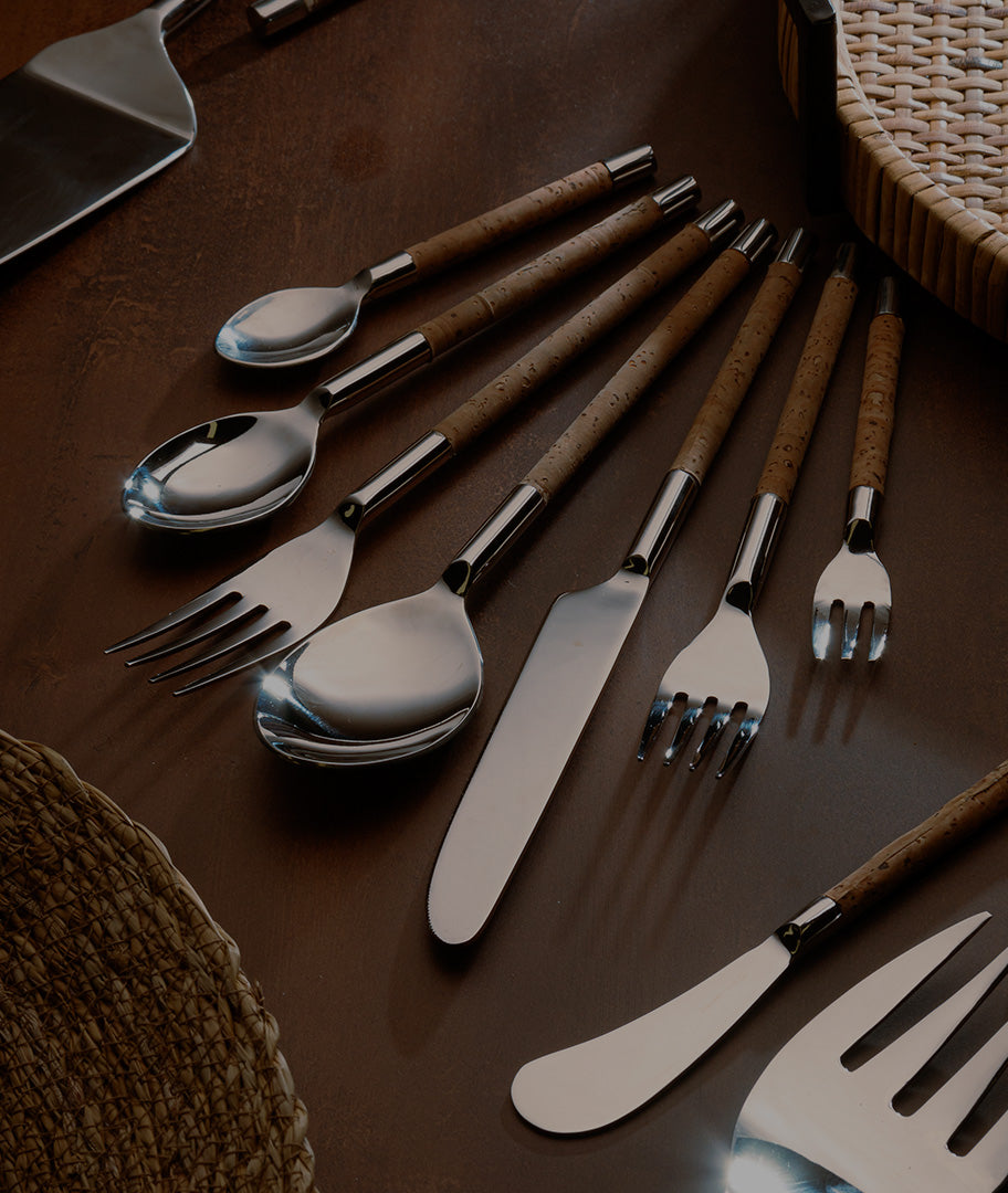 Além dos tradicionais em aço inox, há versões com acabamento dourado, rosé ou acetinado que elevam o charme da sua mesa posta. Ideal para uso diário ou ocasiões especiais.
