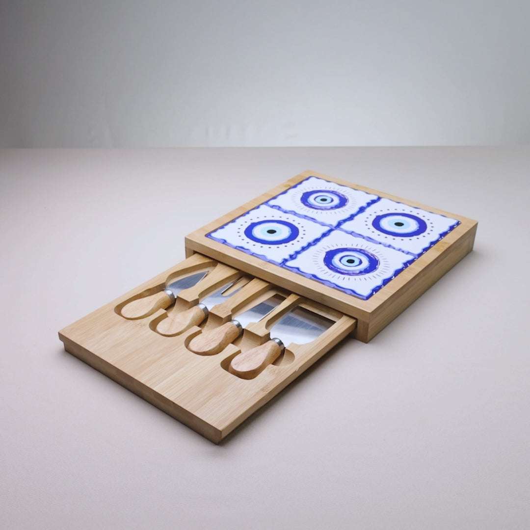 Deixe seus momentos ainda mais especiais com o Conjunto 6 Peças para Queijo Tábua com Gaveta Greek em Bambu da Lyor.