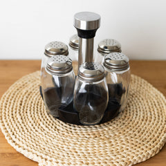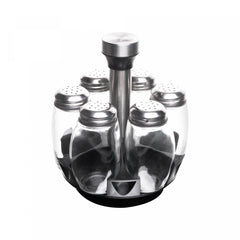 Conjunto 7 Peças com 6 Porta Temperos de Vidro e Suporte Giratório 16cm x 16cm x 17,5cm - Lyor